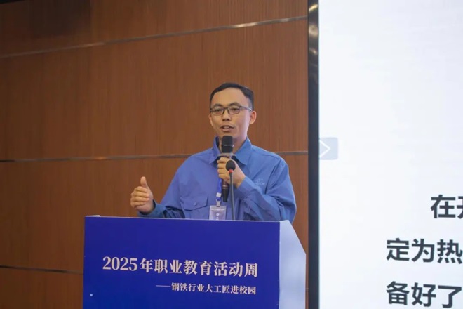 張永杰在致辭中表示,鋼鐵行業(yè)職業(yè)技術(shù)教育,不僅關(guān)乎行業(yè)人才專業(yè)素養(yǎng)和技能水平的提升,更深刻影響著我國未來鋼鐵工業(yè)發(fā)展格局。弘揚工匠精神是人才培養(yǎng)的核心要義,要將其貫穿于人才培養(yǎng)的全鏈條。積極推進行業(yè)模范、技能專家深度參與職業(yè)教學(xué),既傳遞技藝絕活,又培育職業(yè)精神。本次鋼鐵行業(yè)大工匠進校園活動正是全國鋼鐵職業(yè)教育教學(xué)指導(dǎo)委員會踐行產(chǎn)教融合、校企合作,發(fā)展職業(yè)教育的又一次有力推進和堅定落實。