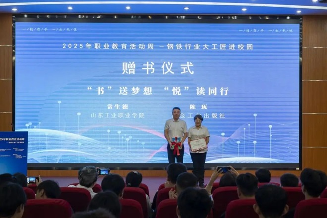 為深入推進全民閱讀,謳歌鋼鐵精神、講好鋼鐵故事、傳播鋼鐵聲音、展示鋼鐵形象、傳承鋼鐵文化,培養(yǎng)鋼鐵學(xué)子書香氣質(zhì),活動現(xiàn)場舉行了“書”送夢想 “悅”讀同行贈書儀式,由冶金工業(yè)出版社向山東工業(yè)職業(yè)學(xué)院贈送精品教材、專著等圖書。
