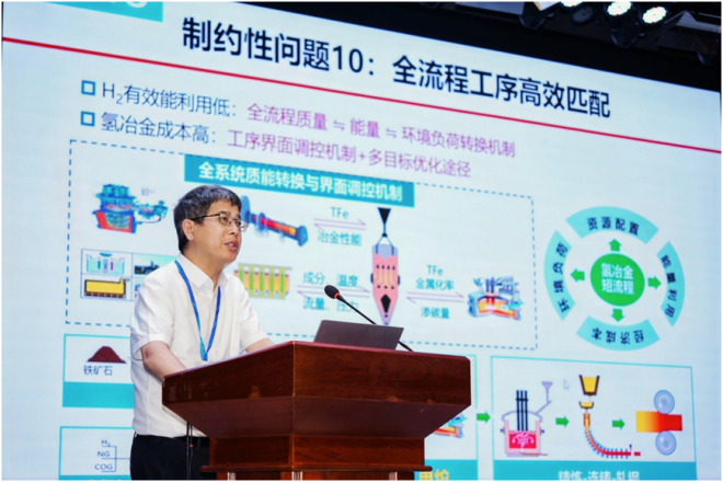 ▲東北大學教授儲滿生作題為“基于氫基豎爐的氫冶金新工藝基礎研究”的報告