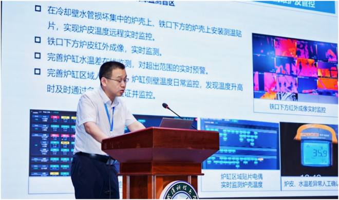 ▲武漢科技大學教授王煒作題為“高爐長壽與關鍵部位智能檢測”的報告
