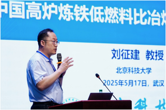 ▲北京科技大學教授劉征建作題為“中國高爐煉鐵低燃料比冶煉技術創新實踐”的報告