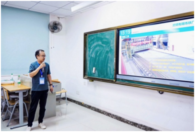 ▲梅鋼張光強作題為“生物質炭噴吹對煤粉燃燒和鐵礦石還原行為的影響研究”的報告