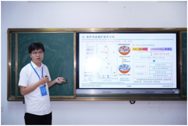 ▲貴州大學岑玉龍作題為“金屬鐵強化鉻鐵礦固態還原的機理研究”的報告