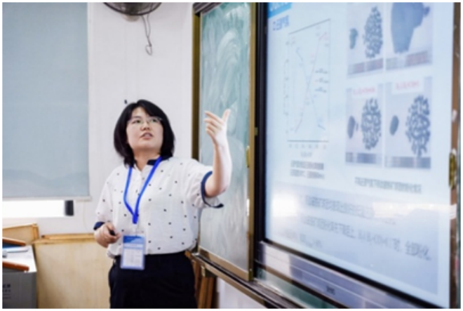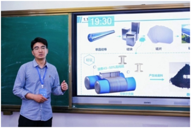 ▲寧夏大學陳廣玉作題為“光伏晶硅切割廢料資源化循環利用:低硼晶硅及Fe/Al-Si合金的制備”的報告