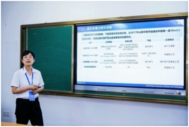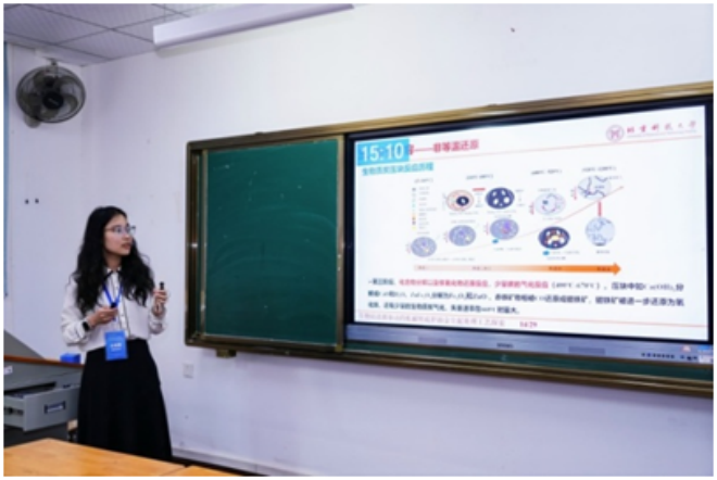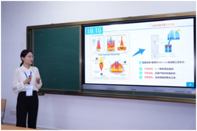 ▲華北理工大學郄亞娜作題為“豎爐氫冶金噴氧段氣體的燃燒與改質”的報告