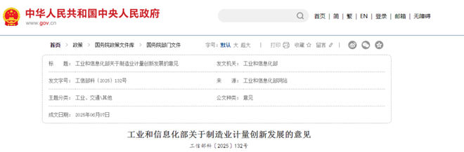 《意見》是我國制造業計量領域首個政策性文件。旨在進一步提升制造業計量能力,夯實計量對構建現代化產業體系的保障作用,加快制造業產業基礎高級化。