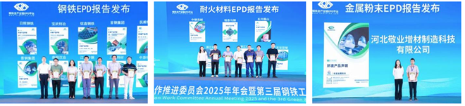 圖為金屬粉末EPD報(bào)告、耐火材料EPD報(bào)告、鋼鐵產(chǎn)品EPD報(bào)告發(fā)布儀式
