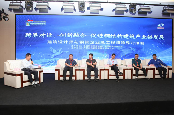 6月25日,中國鋼鐵工業協會和中國勘察設計協會于內蒙古包頭聯合召開了以“跨界對話、創新融合——促進鋼結構建筑產業鏈發展”為主題的建筑設計師與鋼鐵企業總工程師跨界對接會。