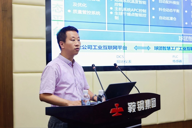 圖為鞍山鋼鐵股份煉鐵總廠廠長、黨委副書記蔣益作《高比例球團礦經驗》應用分享