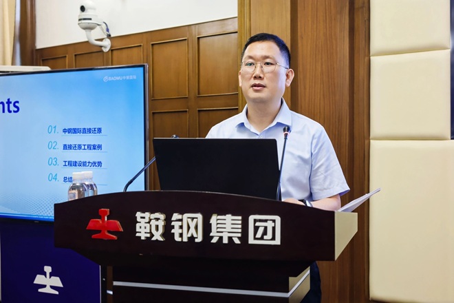 圖為中鋼設備有限公司低碳冶金與基礎能源設施部副總工程師付艷鵬作《中鋼國際氫基豎爐直接還原技術與實踐》主題報告