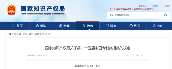 近日,國家知識產權局發布《國家知識產權局關于第二十五屆中國專利獎授獎的決定》。第二十五屆中國專利獎共評選出中國專利金獎獲獎項目30項,中國外觀設計金獎獲獎項目10項,中國專利銀獎獲獎項目60項,中國外觀設計銀獎獲獎項目15項,中國專利優秀獎獲獎項目607項,中國外觀設計優秀獎獲獎項目47項。