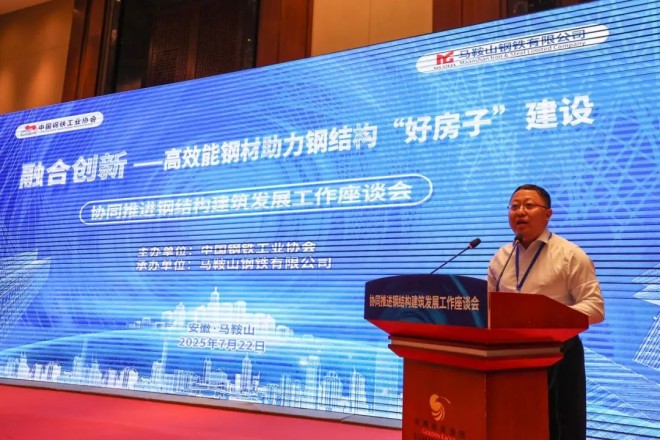 7月22日,由中國(guó)鋼鐵工業(yè)協(xié)會(huì)主辦、馬鞍山鋼鐵有限公司承辦的以融合創(chuàng)新——高效能鋼材助力鋼結(jié)構(gòu)“好房子”建設(shè)為主題的協(xié)同推進(jìn)鋼結(jié)構(gòu)建筑發(fā)展工作座談會(huì)在安徽馬鞍山召開(kāi)。