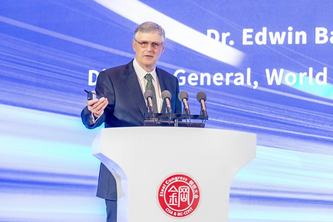 史軼瑋在致辭中表示,當前世界百年未有之大變局加速演進,新一輪科技革命和產業變革深入發展,全球鋼鐵行業既面臨重大挑戰,也面臨全新機遇。圍繞推動鋼鐵行業健康、可持續、高質量發展,他提出三點建議:一是加強開放合作,共同促進全球鋼鐵貿易穩定健康發展。二是加強創新合作,推動行業整體發展邁上新臺階、煥發新動能、開辟新賽道。三是加強綠色合作,共同制定綠色鋼鐵貿易之策,共同營造有利于開展綠色合作的國際環境。