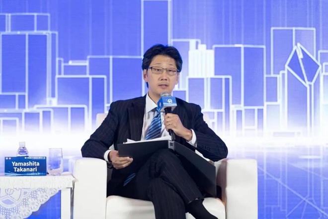 圖為山下隆也出席“世界鋼鐵市場和產業動向”論壇