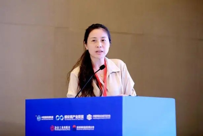 劉冬介紹了螺紋鋼產品發展現狀、螺紋鋼出口各國認證制度簡介,并分享了關于螺紋鋼企業綠色低碳發展路徑的思考。徐少兵做《建筑用鋼及鋼結構 PCR 2.0與綠碳平臺建設助力高端建筑綠色低碳發展》主題報告并指出,在全球碳中和背景下,建筑行業加速綠色轉型,采購低碳排放鋼材成為關鍵路徑。陜鋼集團研究總院副院長許宏安、南京凈環熱冶金工程有限公司副總經理于宏朋分別做《綠色智能直軋技術裝備產業化相關主題》《趁熱打鐵——長材高溫直軋技術變革》主題報告。