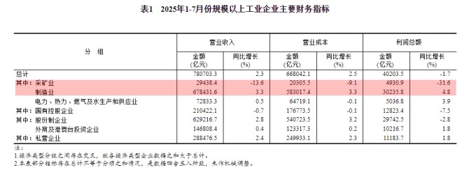 8月27日,國家統(tǒng)計局發(fā)布文章,公布了2025年1—7月份全國規(guī)模以上工業(yè)企業(yè)利潤相關(guān)數(shù)據(jù)。