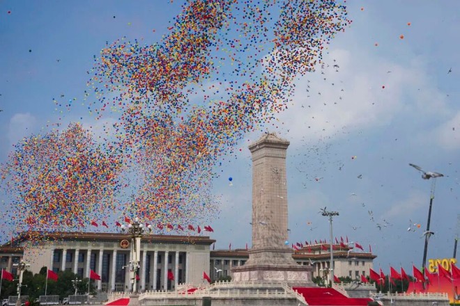 各界代表和群眾匯聚北京天安門廣場隆重集會,黨和國家舉行盛大閱兵儀式,共同銘記歷史、緬懷先烈、珍愛和平、開創未來。