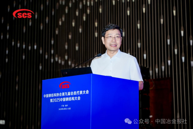 2025年10月13日-15日,中國鋼結構協會第九屆會員代表大會暨“2025中國鋼結構大會”在廣西南寧召開。大會以無記名投票方式選舉產生第九屆理事會理事365人,第二屆監事會監事7人,薛健為監事長,表決通過《章程》修訂案。九屆一次理事會議選舉常務理事103人、負責人28人,曾濱當選為會長,王玉貴等26人當選為副會長,李慶偉當選為秘書長。會后,中國鋼鐵工業協會副會長夏農對新任職的28位理事會負責人進行了集體談話。