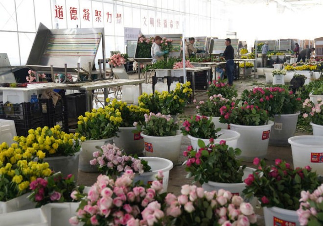 2025年3月24日,工人在云南麗江現代花卉產業園包裝鮮花。新華社發(梁志強攝)