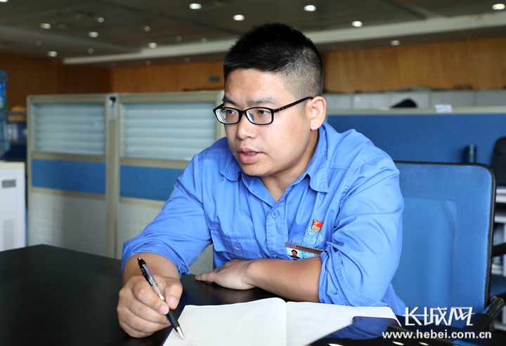 首鋼京唐制造部家電板室主任劉武華接受采訪。 記者 煙成群 攝