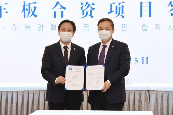 6月25日,河鋼集團與韓國株式會社POSCO以視頻會議形式舉行河鋼POSCO汽車板合資項目簽約儀式, 正式落地實施年產135萬噸的高端汽車面板項目,將雙方全面合作關系推向新的高度。