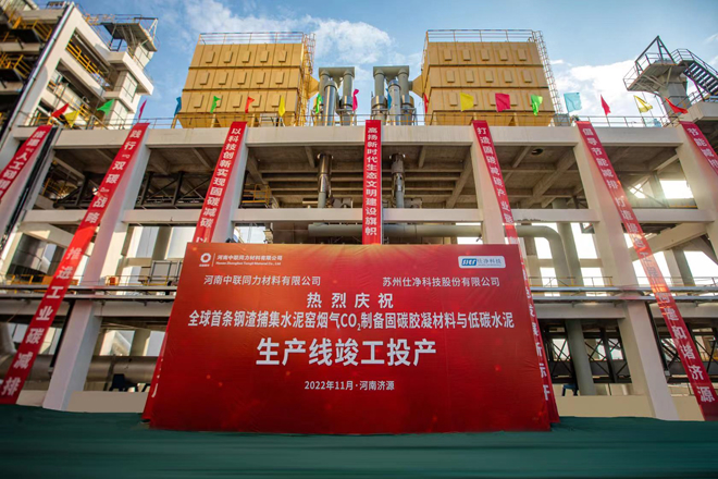 2022年11月14日上午,全球首條鋼渣捕集水泥窯煙氣CO2制備固碳輔助性膠凝材料與低碳水泥生產(chǎn)線在河南省濟源中聯(lián)水泥有限公司竣工投產(chǎn),這標志著我國水泥行業(yè)CO2捕集利用技術(shù)和產(chǎn)業(yè)化運用邁上新的臺階,為鋼渣規(guī)模化安全應(yīng)用于建材,實現(xiàn)高值資源化利用開辟了新的途徑。