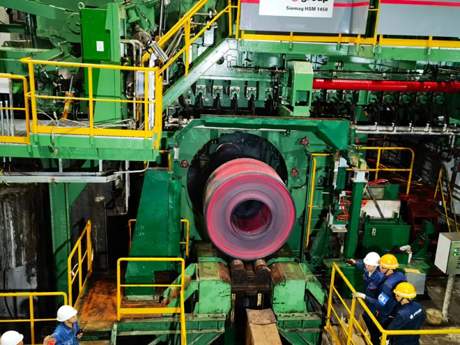 12月9日22點10分,一塊火紅的鋼坯順利通過粗軋機組、精軋機組,最后被卷成一個形狀規整的鋼卷。這標志著攀鋼釩“十四五”規劃的重點工程、2022年“三大技改工程”之一的1450熱軋產線技改工程熱負荷試車一次成功。至此,歷時86天的熱軋產線技改第二次停產施工全部完工,開創了國內同類型技改施工工期最短紀錄。