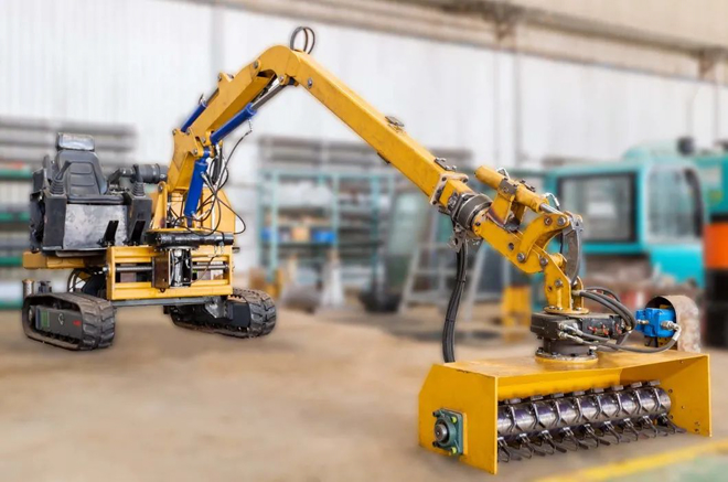 該機型采用模塊化設計,通過更換不同類型的割頭,來實現割灌、除草、收割等功能。操作臂可實現多角度作業,適用于不同地形,工作效率比國內普通割草機提高50%。底盤采用全液壓自走式履帶,操作靈活,大大降低了人工操作強度。整車所有零部件均實現小型化設計,與國外同功能自走式割草機相比,制造成本降低了65%。