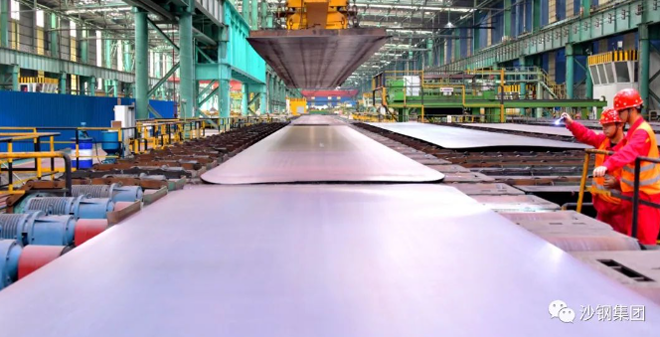 10月9日,沙鋼鋼板總廠寬厚板二車間一派繁忙生產景象,一塊塊火紅的鋼板像一條條火龍,在軋機上來回穿梭,經過加熱、粗軋、精軋、切割等工序,完美蛻變成一塊塊高性能鋼板。