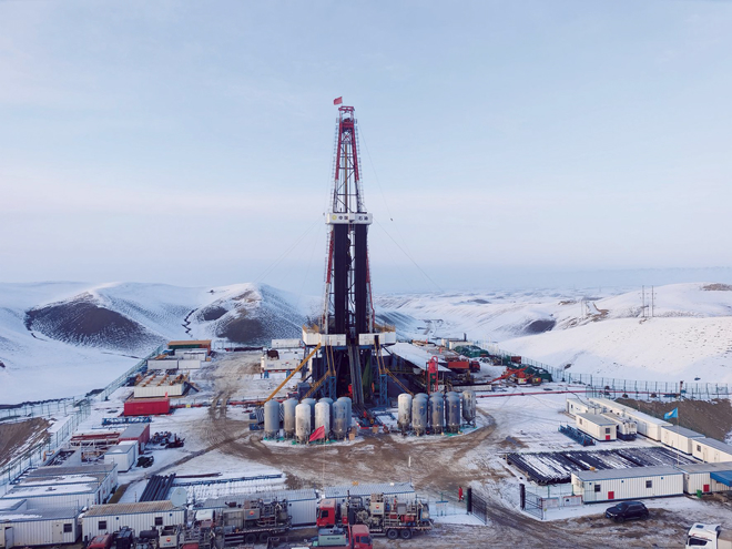1月6日,湖南鋼鐵集團衡鋼首次供應的高端特殊扣套管在準噶爾盆地南緣清北1井成功下井,這是新疆油田和準噶爾盆地首口突破9000米的超深井,也是國內陸上第二深直井。該井地質結構復雜,地層溫度高達190攝氏度,壓力高達170兆帕,屬超深、超高溫、超高壓勘探井。衡鋼研發高端特殊扣產品,并由該公司首席技術專家帶隊,不畏零下20攝氏度的惡劣天氣,深入油田現場跟井服務。經過幾天連續作業,所有套管順利完成下井,氣密封檢測全部合格。圖為清北1井成功下井俯瞰。 (周金云/文 李超/攝)