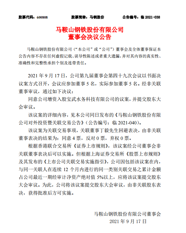 馬鞍山鋼鐵股份有限公司董事會決議公告