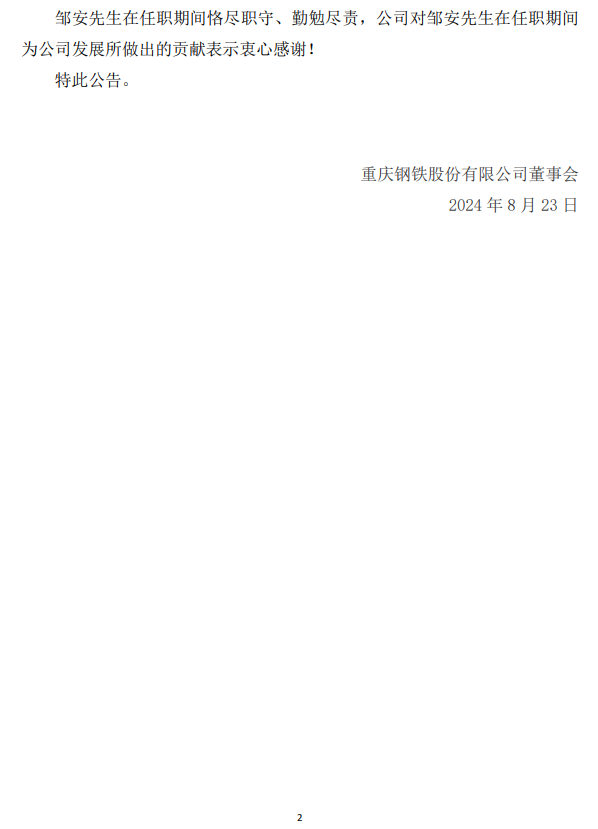 重慶鋼鐵:關(guān)于董事會(huì)秘書辭職的公告