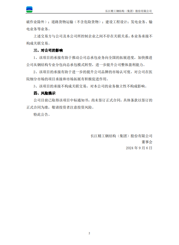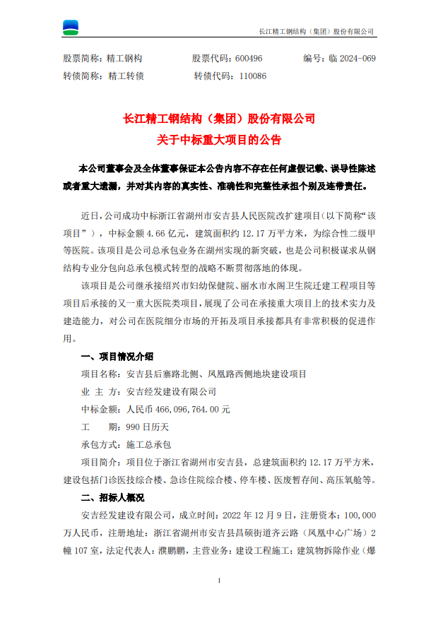 精工鋼構:精工鋼構關于中標重大項目的公告