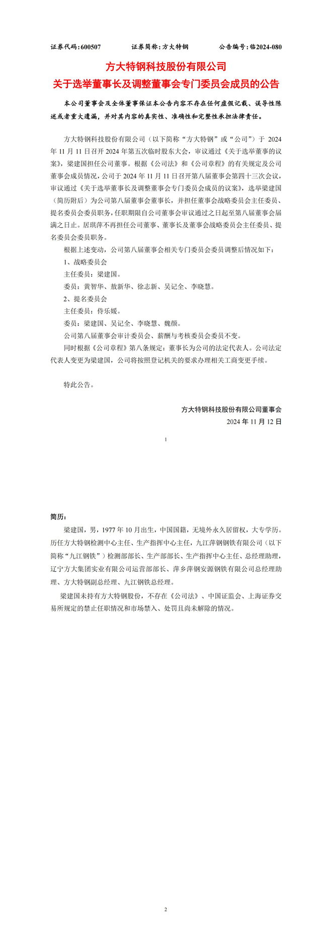 方大特鋼:方大特鋼關于選舉董事長及調整董事會專門委員會成員的公告