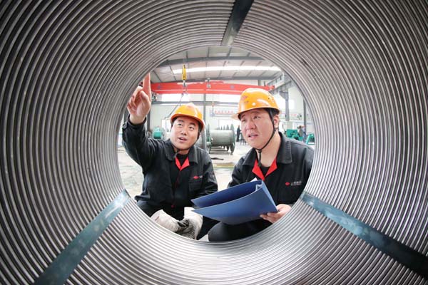 今年初以來,山鋼集團濟鋼合金科技公司組織技術攻關小組,細化分解生產工藝流程,進一步完善脫氧鋁線產品的生產標準,順利于5月份完成1301噸的生產目標任務,且產品質量保持穩定。圖為該公司職工正在檢查鋁線產品質量。 (特約通訊員 李建輝 通訊員 李鵬 攝)
