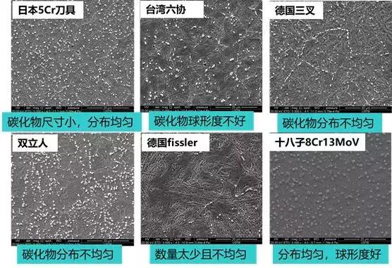 圖. 十八子廚刀與國內(nèi)外高品質(zhì)廚刀顯微組織對比