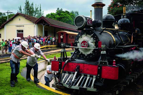 2015年3月22日,米納斯吉拉斯州提拉代特斯車站,在轉(zhuǎn)盤上掉頭的“瑪麗亞·富馬卡”蒸汽火車。(作者:YASUYOSHI CHIBA)