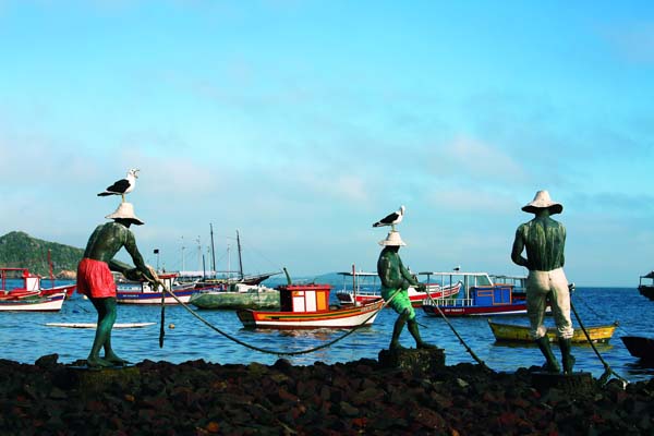 2015年8月2日,海鷗站在里約熱內(nèi)盧海港邊的漁民雕像上歇腳。(作者:蔡鴻賢)