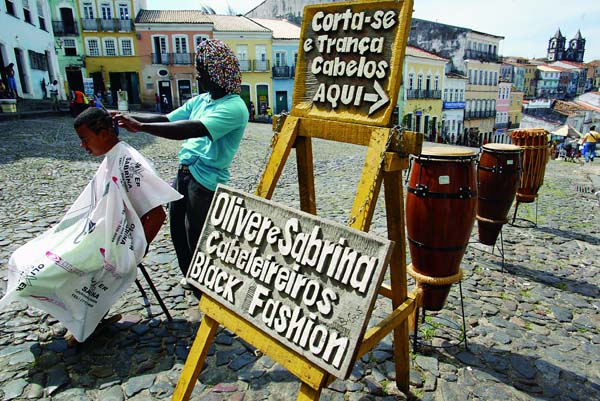 2005年10月20日,一位理發(fā)師在薩爾瓦多路邊給顧客理發(fā)。(作者:陸中秋)