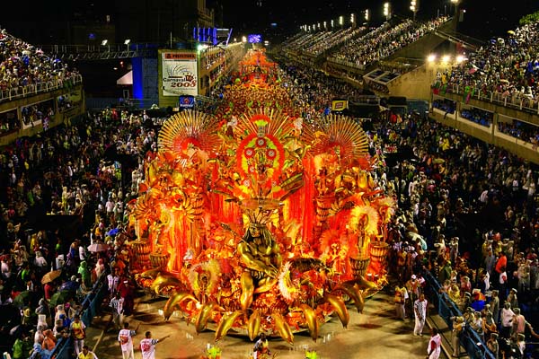 2008年2月4日,里約熱內(nèi)盧狂歡節(jié)上色彩斑瀾的花車游行隊伍。(作者:張傳奇)