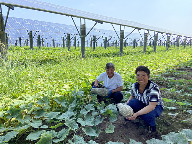 7月21日,晉南鋼鐵集團(tuán)鄰村村民在農(nóng)業(yè)園區(qū)光伏板下察看南瓜長勢情況(如圖)。 近年來,該集團(tuán)在發(fā)展光伏新能源產(chǎn)業(yè)的同時,因地制宜發(fā)展農(nóng)光互補(bǔ)項(xiàng)目,在光伏板下規(guī)模化種植了數(shù)百畝南瓜,既能實(shí)現(xiàn) 節(jié)能降碳,又能有效提高土地利用率、增加當(dāng)?shù)剞r(nóng)民收入,為鄉(xiāng)村振興注入新活力。(丁衛(wèi)國 攝)