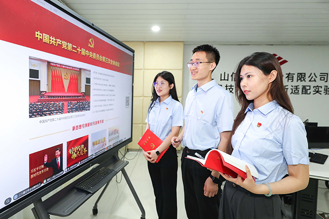 7月22日,山信軟件部分黨員通過網絡學習黨的二十屆三中全會相關報道(如圖)。黨的二十屆三中全會閉幕后,山鋼集團各單位黨員職工以多種形式深入學習全會精神。大家表示,要切實提高政治站位,把全會精神轉化為指導工作的思想武器,立足本職崗位,真抓實干。(王榛圖/文 特約通訊員 李建輝/攝)