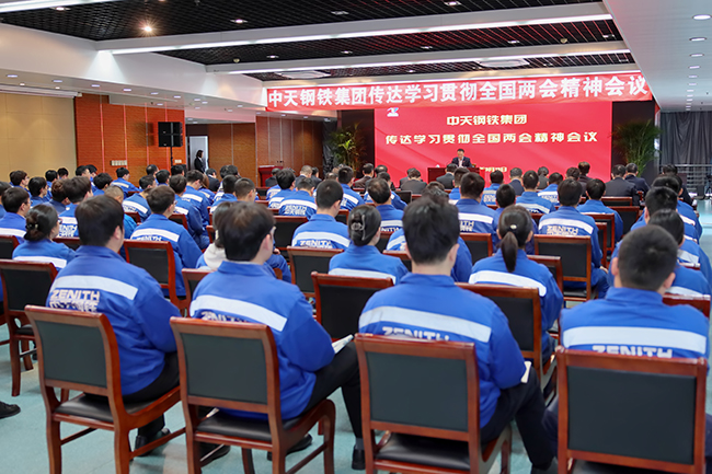 3月13日,第十四屆全國人大代表,中天鋼鐵集團董事局主席、總裁、黨委書記董才平在圓滿完成全國兩會履職任務后,返回工作崗位,并第一時間組織召開專題會議,傳達學習貫徹習近平總書記重要講話精神和全國兩會決策部署。通過學習,大家表示要錨定“十四五”規劃目標任務,堅定信心、實干爭先,全力推動各項工作部署落到實處,切實把全國兩會政策紅利轉化為企業高質量發展實效。圖為會場。(王晶晶/文特約通訊員陳明/攝)