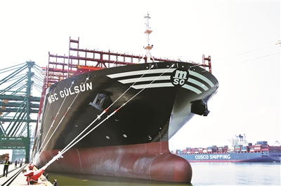 7月8日,世界載箱量最大的集裝箱船“地中海古爾松”輪在天津首航,該船將服務于亞歐之間的海上物流運輸。