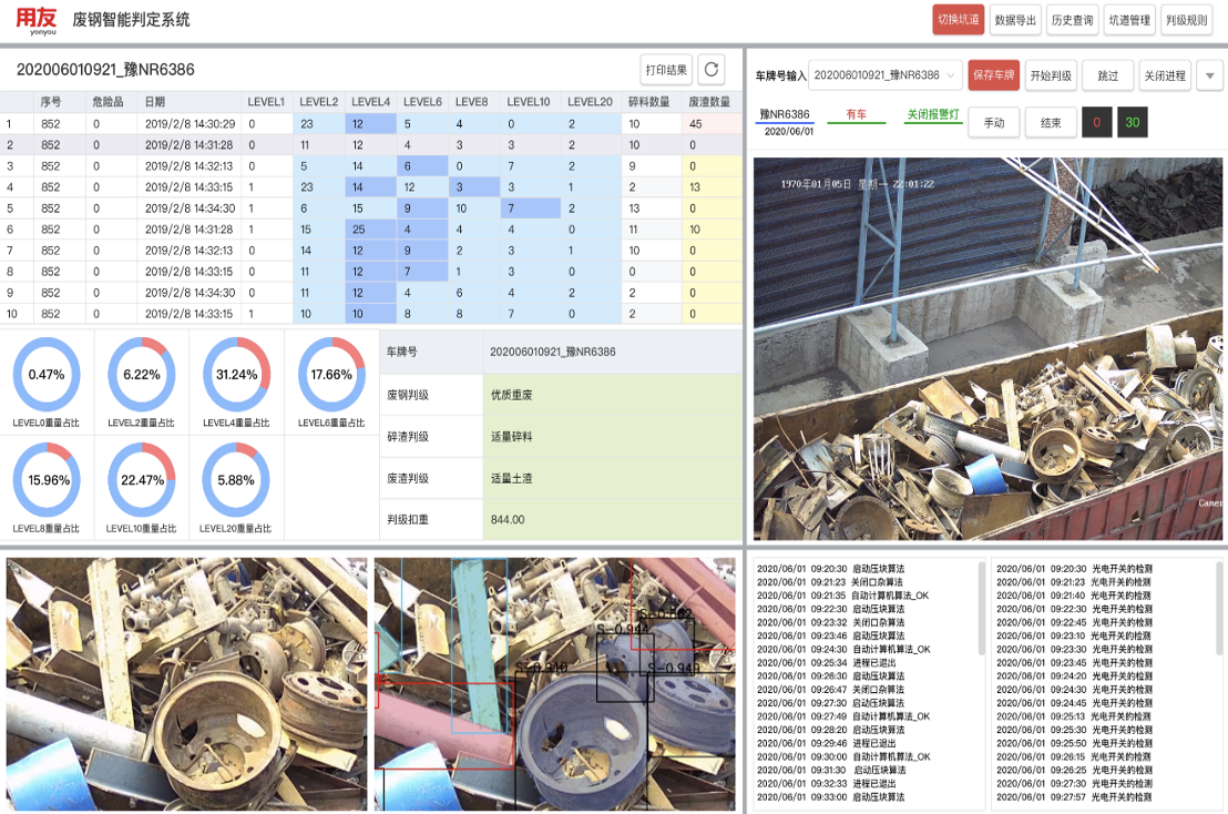 得益于技術的改進,用友BIP工業大腦的“廢鋼判級”服務,集合了包括人工智能深度學習、無線物聯網、全自動聚焦拍照、廢鋼厚度識別、產品規?;桓兜认冗M技術,幫助企業實現遠程集中調度、遠程智能判級、遠程實時監控,準確率達90%以上。既減少了現場作業風險,又在保障安全的同時降低驗質人員成本,避免暗箱操作帶來的損失。同時還能夠對每車廢鋼的判定結果、過程、人員、標準、時間留痕,實現全程數字化追溯。廢鋼的智能判定系統與計量、財務系統集成,實現業務財務一體化、數據不落地,全程智能高效,為鋼鐵企業帶來巨大的經濟效益。