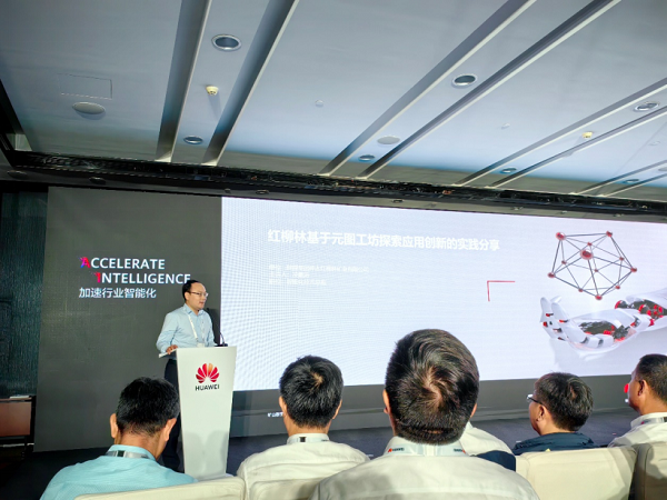 陜煤集團神木紅柳林礦業有限公司智能化技術總監凌鵬濤在會上分享了紅柳林基于元圖工坊探索應用創新的實踐成果。