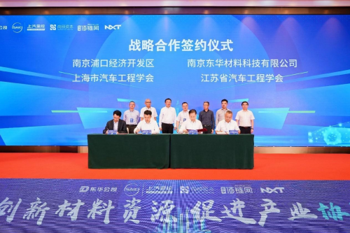 在與會領(lǐng)導(dǎo)和嘉賓的見證下,南京浦口經(jīng)濟開發(fā)區(qū)、上海市汽車工程學(xué)會、江蘇省汽車工程學(xué)會和南京東華材料科技有限公司簽署戰(zhàn)略合作協(xié)議,多方戰(zhàn)略合作將朝著新材料合作研發(fā)、新材料應(yīng)用創(chuàng)新等方面實現(xiàn)突破,也展現(xiàn)出了浦口區(qū)打造新材料產(chǎn)業(yè)集群、促進產(chǎn)業(yè)結(jié)構(gòu)升級、完善本地原材料供應(yīng)鏈的強勁動能和發(fā)展機遇。
