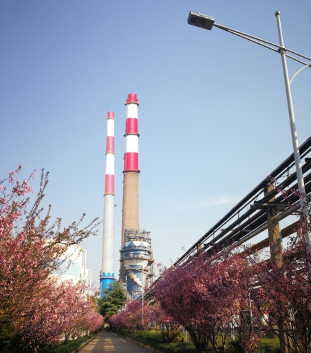 上海寶鋼自備電廠1、2號均為單筒鋼筋混凝土煙囪,已過服役期,影響整體安全,綜合因素考慮,設計方決定在原鋼筋混凝土內部加設自立式鋼內筒(直徑7米),鋼內筒采用鈦-鋼復合板。鈦-鋼復合板鋼內筒具有混凝土筒身與煙氣隔離,腐蝕速度減緩;內外筒間設檢修鋼梯和照明,檢修方便;耐腐蝕年限長等優點。