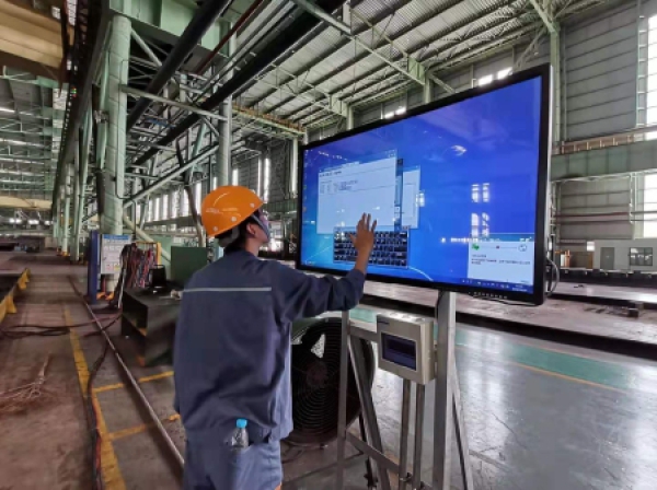 湛鋼4200厚板廠離線區域移動辦公工程,是通過新增移動設備來對厚板廠全廠的離線作業操作流程進行簡化。該工程分為兩期,一期工程包括板坯庫、冷床、熱處理、火切區域在內的13套移動辦公設備,二期工程包括成品庫的7套設備。目前已安裝顯示屏13臺、分電箱13個,并完成電纜橋架敷設400米,電纜敷設2300米、光纜敷設1000米。改造完成后,操作人員將通過手持終端機直接在現場核對板坯、鋼板信息參數并錄入系統,實現無紙化辦公,達到降低勞動強度,提高現場信息處理準確性和及時性的目的。