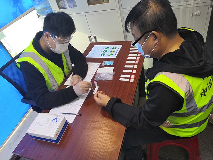 中冶天工深圳正本清源項目部選用新型冠狀病毒IgG/IgM抗體檢測試劑盒(膠體金法)檢測方法,可在10-15分鐘內準確測量結果,有效縮短了檢測時間、提高了檢測速度,使樣本采集方式更為便捷和安全。目前項目部已返崗人員均在返深四天后進行了檢測,檢測結果正常,待農民工陸續返崗后項目部將另行組織檢測,保障項目全員利用科技手段織密疫情防護網,為全體人員健康狀況保駕護航。